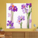 Abstract wall art, purple flowers, and clear vases will add accents and rhythm to your room decor.