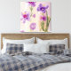 Abstract wall art, purple flowers, and clear vases will add accents and rhythm to your room decor.