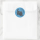 Stretching Black Cat on Blue Custom Name Classic Round Sticker