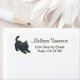 Cute cartoon illustration of a black cat having a good stretch. Customizable text.