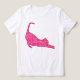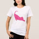 Girls tee in a silhouette of a stretching cat in a modern tribal batik pattern, in shades of fuchsia pink