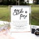 If you're planning a fun photo wall or photo booth at your wedding or engagement party, this sign is for you! Place it next to your props so guests know what to do. Modern and chic design in black and white features "strike a pose" in handwritten style script lettering with a few rhyming lines to direct your guests. Personalise with your names and wedding date, and add an optional wedding hashtag for guests to share on social media.
