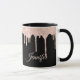 This striking mug features sparkling glitter drips all around the top edge down onto a black finish, creating a wonderful contrast. Personalise with your name for your very own chic stylish mug!