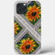 Protect your iPhone with a striking case containing photos of orange sunflowers surrounded by borders made from the intriguing patterns found in tree bark.