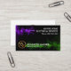 Card features darkness illuminated by striking purple and green luminescent lightnings at the top and bottom layers. The lightning at the bottom houses your prestigious name and job title alongside an optional gold electrician's logo. Towards the upper right corner are your business name and contact number.