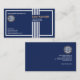 A simple design with the main centerpiece being the five striking vertical white stripes that cut across the face of the card ; To accompany it, there's a rectangle that encapsulates the entire outer rim. At a cut-off midway through the vertical stripes, are your prestigious name and job title. Westwards to this, the logo and business name sit at the top left corner. Directly underneath, near the foot of the card are the business details.