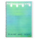 String lights and mason jars in blue green spiral notebook