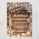 String Lights Baby's Breath & Lace Wood Wedding Invitation