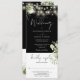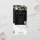 An all-in-one black and white wedding invitation featuring pretty string lights, rustic botanical floral greenery and elegant typography. The invitation includes an RSVP card that can be cut off and guest information details. Designed by Thisisnotme©