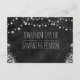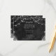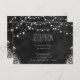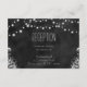 String of Lights Chalkboard © Sunny Mars Designs. Stylish, modern, elegant, classy, trendy, chic customisable formal or cute casual 5" x 3.5" wedding reception card enclosure with a beautiful black chalkboard design featuring bulbs of rope or string lights hanging above with a floral tropical design below.