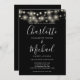String Lights Black White Elegant Script Wedding Invitation