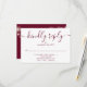 An elegant modern burgundy signature script RSVP card with your details set in chic typography and pretty string lights on the reverse. Designed by Thisisnotme©