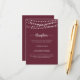 This string lights burgundy wedding reception enclosure card is perfect for a rustic wedding. The design features beautiful hand-painted string lights in a burgundy background.
