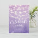 Modern string lights celebrate birthday invitation set on a light purple watercolor background. View our matching back for an extra special touch.