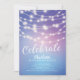 Modern string lights celebrate birthday invitation set on a purple/blue background. View our matching back for an extra special touch.