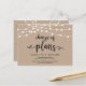 This is the modern minimal Rustic Kraft String lights, in Black font, Wedding party invitation Rescheduled (postponed / postponement) postcard (Change of date) . It is the perfect to make the reschedule announcement to your friends and family.