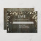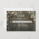 Rustic farm, barn or outdoor garden night wedding chic styling made easy. Worn, aged, vintage dark patina barn wood paired with string twinkle lights for a romantic, simple, warm and welcoming wedding invitation suite. Simple. Trending. A complete wedding invitation set is available to match. Art copyright Audrey Jeanne Roberts, all rights reserved.