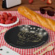 These stylish paper plates featuring pretty string lights and a hand-drawn floral can be personalised with your information in chic gold lettering on a black background. Designed by Thisisnotme©