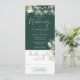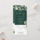 An all-in-one emerald green wedding invitation featuring pretty string lights, rustic botanical floral greenery and elegant typography. The invitation includes an RSVP card that can be cut off and guest information details. Designed by Thisisnotme©
