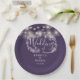 String Lights Floral Purple Script Wedding Paper Plate