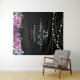 Celebrate your wedding anniversary with this custom tapestry. Your guests will enjoy taking a photo with this sophisticated party backdrop and remember your special day. The design features chic typography "25th Anniversary", string lights, and floral background. Matching invitation and party supplies are available at my shop BaraBomDesign. Thanks!