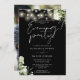This elegant black and white botanical greenery floral string lights wedding evening party invitation can be personalised with your information in chic typography and your photo on the reverse. Designed by Thisisnotme©