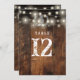 These rustic table numbers, featuring string lights and horseshoes on a barn wood background, are perfect for all celebrations. Designed by Thisisnotme©