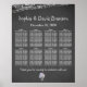 String Lights Mason Jar Chalkboard Wedding Seating Chart design with glowing lights in the evening night, mason jar full of soft hydrangea flowers, a chalkboard tag with bride and groom initials, all on a chalkboard background. See, also, other matching items in my "Wedding String Lights Mason Jar Hydrangea Chalkboard" collection, below.