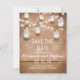 Perfect save the date flat card with rustic light colour wood background, string lights and sparkling mason jars. Please contact me if you need help with customisation or have a custom colour request.