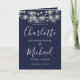 String Lights Navy Blue Elegant Script Wedding Programme