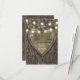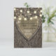 String Lights + Oak Tree Bark Wedding RSVP Cards - features a carved heart, string lights and tiny twinkle lights scattered at the top. The background features an oak tree bark background.
