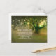 rustic country save the date postcard with old oak tree covered with Spanish moss and hanging strings of lights. Romantic save the date for tree inspired outdoor wedding