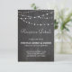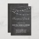 Rustic wedding announcement reception card. Matching string light on chalkbard invitation suite. Find matching stationery and wedding signage in our shop.