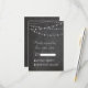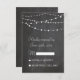 Rustic wedding RSVP card. Matching string light on chalkbard invitation suite. Find matching stationery and wedding signage in our shop.