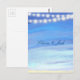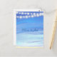Beautiful watercolor ocean background with light and dark blue water with soft string lights overhead. Ocean waters meet the gorgeous tan sandy background. Perfect design for your destination or beach theme wedding or special event. Easily edit text and fonts on this watercolor design.