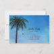 A large palm tree lit up with string lights accents this tropical response card on a watercolor turquoise, blue background, making it perfect for destination, Caribbean, Hawaiian, Florida, tropical, poolside, summertime or beach wedding. Coordinating items can be found in the String Lights Palm Tree Wedding Collection. If additional items are needed, just contact us with your request at prettyfancyinvites@gmail.com