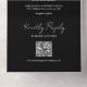 This all-in-one string lights black and white wedding invitation features elegant typography. The invitation includes a perforated RSVP card with your wedding website QR code. Designed by Thisisnotme©