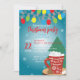 This is a captivating and customisable Christmas party invitation that is sure to ignite the holiday spirit in every recipient. The invitation is set against a mesmerising backdrop of a gradient that transitions from a tranquil blue to a vibrant green, reminiscent of a serene winter night transitioning into a lively Christmas morning. At the top, a string of radiant Christmas lights in a variety of colours adds a festive touch, symbolising the joy and warmth of the holiday season. The bottom right corner features a delightful red mug filled with marshmallows and with "Merry Christmas" text inscribed on it, inviting you to indulge in the sweet pleasures of the season.