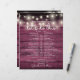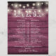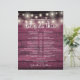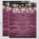 This rustic string lights wedding schedule-timeline can be personalised with your wedding details set chic white lettering on a burgundy red wood panels background. Designed by Thisisnotme©