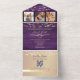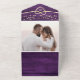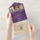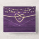 Embark on a journey of timeless elegance and rustic charm with our all-in-one wedding invitation, set against a backdrop of rich, country-inspired barn wood in a regal shade of purple. Adorned with a romantic gold rope heart and delicate string lights, this invitation exudes modern sophistication with a touch of rustic allure.