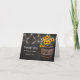 Stylish country wedding thank you card featuring a rustic black chalkboard backdrop, string twinkle lights, summer golden yellow sunflowers, a winery wooden barrel wiith your initials and a piece of knotted string.