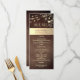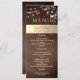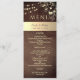 Bring warmth and charm to your reception with this elegant rustic wood wedding menu card, featuring delicate golden floral accents and twinkling string lights. Perfect for romantic fall or winter weddings, this design adds a cosy yet refined touch to your tablescape. Personalise with your menu selections and wedding details to create a memorable dining experience your guests will love.