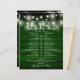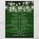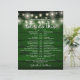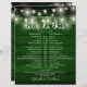 This rustic string lights wedding schedule-timeline can be personalised with your wedding details set chic white lettering on an emerald green wood panels background. Designed by Thisisnotme©