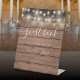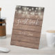 String Lights Rustic Wood Script Guest Book Pedestal Sign