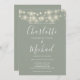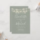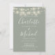 Elegant sage green signature wedding invitation featuring pretty string lights and signature style names, this stylish wedding invitation can be personalised with your information in chic white lettering. Designed by Thisisnotme©