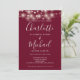 Featuring pretty string lights and signature style names, this elegant burgundy wedding invitation can be personalised with all your special wedding day information on the front, your wedding website details, and your QR code on the reverse. Designed by Thisisnotme©