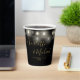Elegant black and gold wedding paper cup featuring pretty string lights, signature style names and your special wedding date. Designed by Thisisnotme©