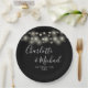 String Lights Signature Script Black White Wedding Paper Plate