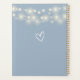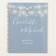 Elegant dusty blue wedding planner featuring pretty string lights and signature style names. Designed by Thisisnotme©