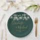 String Lights Signature Script Green Gold Wedding Paper Plate